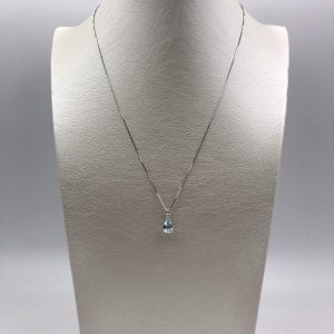 375,00€Catenina e ciondolo in oro bianco 18 kt, acquamarina carati 0,76, diamanti carati 0,02