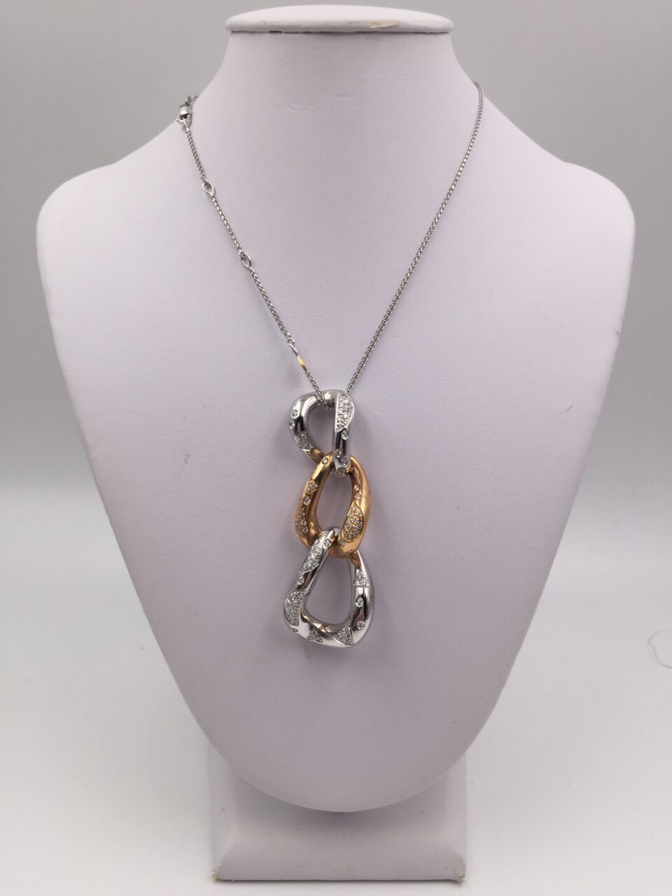 Collana in oro bianco 18 kt, pendente in oro bianco e rose’ 18 kt, diamanti bianchi carati 0,73 colore G-IF