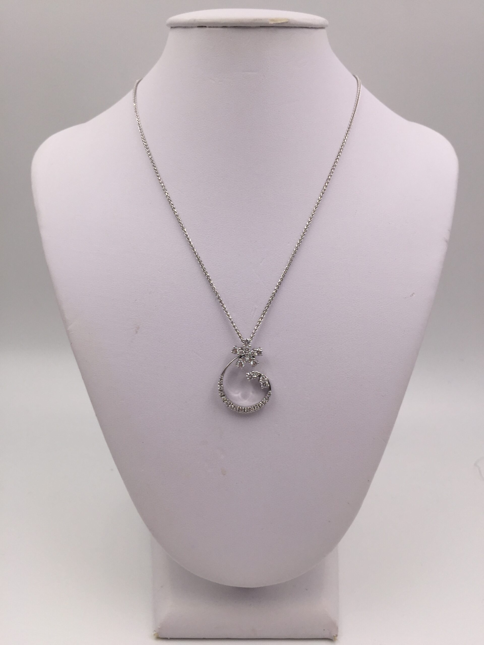 Collana e pendente in oro bianco 18 kt, diamanti bianchi carati 0,27 colore G-IF