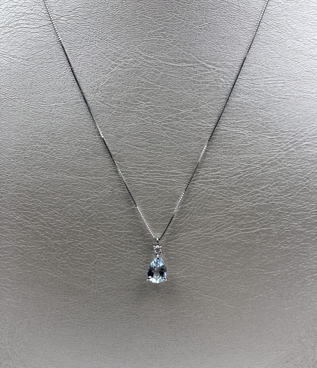 Catenina e ciondolo in oro bianco 18 kt, acquamarina carati 0,52, diamanti carati 0,02