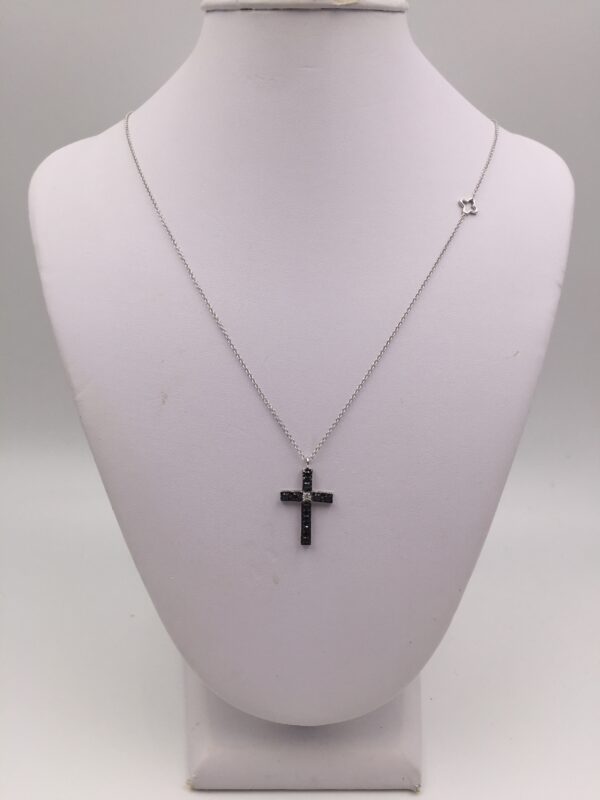 Catenina in oro bianco 18 kt, pendente in oro bianco 18 kt, diamante bianco carati 0,03 colore G-SI, diamanti neri carati 0,26