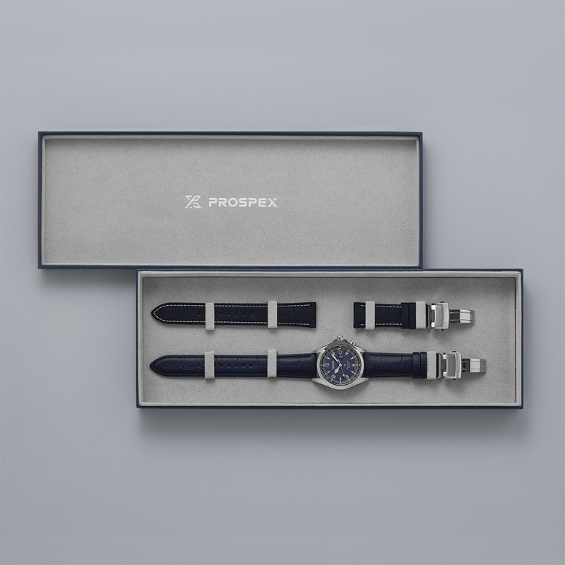 Questa inedita edizione limitata Europa rende omaggio al primo orologio sportivo Seiko del 1959, reinterpretato per gli esploratori moderni. Il tema cromatico si ispira al cielo notturno sopra il Monte Cervino. Il quadrante blu intenso con una sottile struttura verticale ricorda le notti limpide in montagna. Con due cinturini, uno in pelle di vitello blu navy e l’altro in nylon, questo Alpinist si adatta a tutti gli stili.