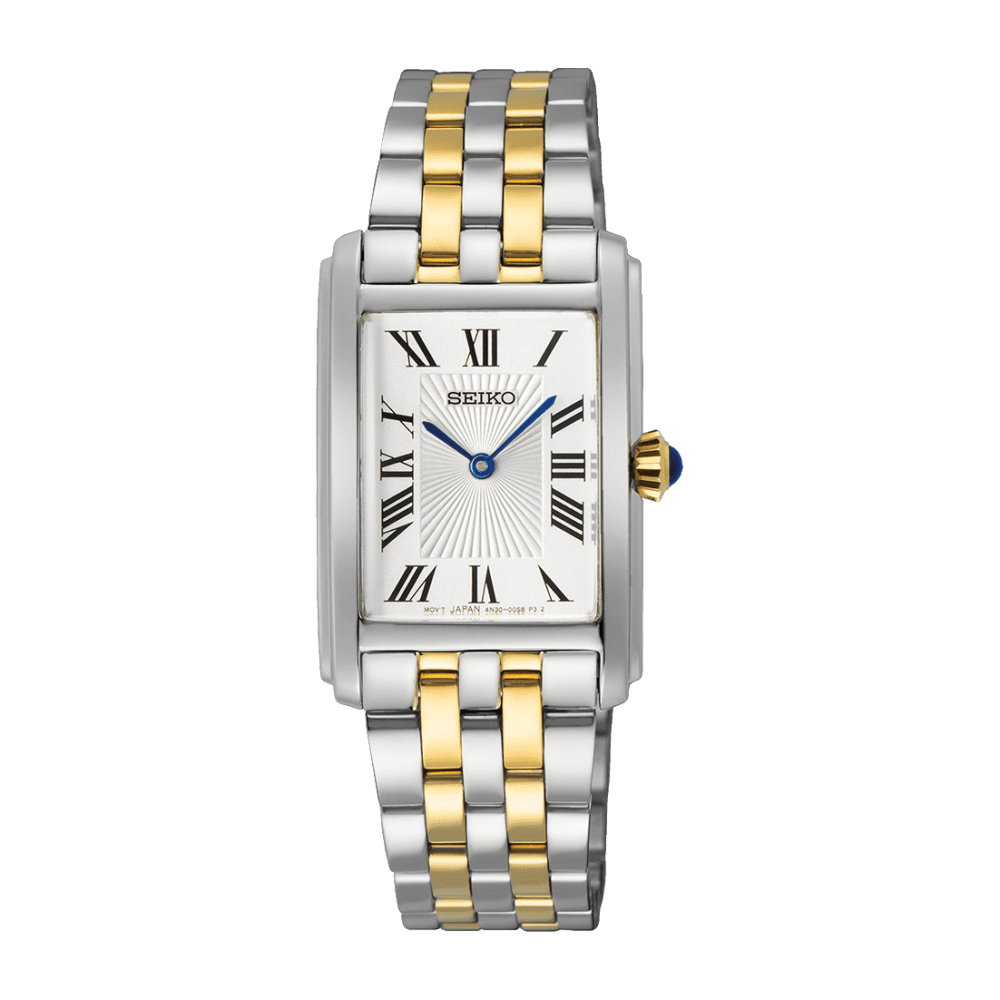 L’orologio SWR087P1 è il complemento perfetto per qualsiasi abito formale, grazie all’elegante cassa e al quadrante satinato a raggiera. Questo orologio in acciaio inossidabile presenta numeri romani e un grazioso cabochon blu. Elegante e robusto, l’orologio è impermeabile fino a 5 bar e ha un vetro Hardlex bombato.